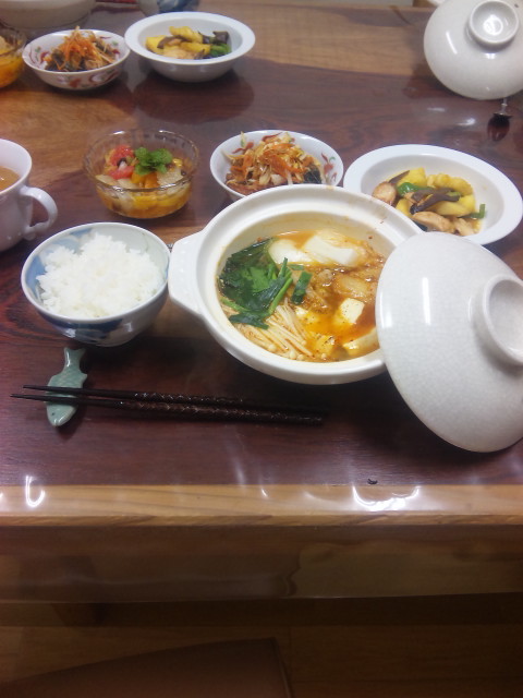鯖の中華風マリネ、鶏とパイナップルの旨煮、キムチ鍋、柑橘類のハチミツ漬け
