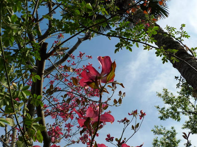 花水木とシュロ…ちょっぴり南国チックに撮れました