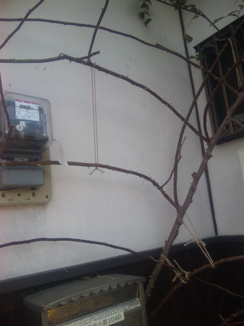 誘引の作業中です。ピエールドロンサール咲くのが楽しみです。