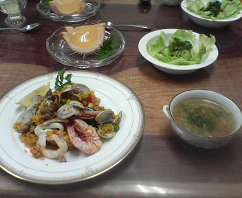 アボカドときゅうりのサラダ・フライパンで作るパエリア・せん切り野菜のスープ・グレープフルーツゼリー