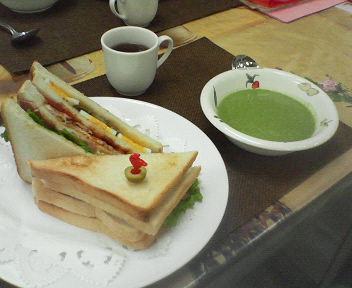 アメリカンクラブハウスサンドイッチとほうれん草のスープです。